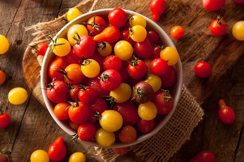 - Tomates cherry. Son ricos, saludables y muy cómodos de comer.